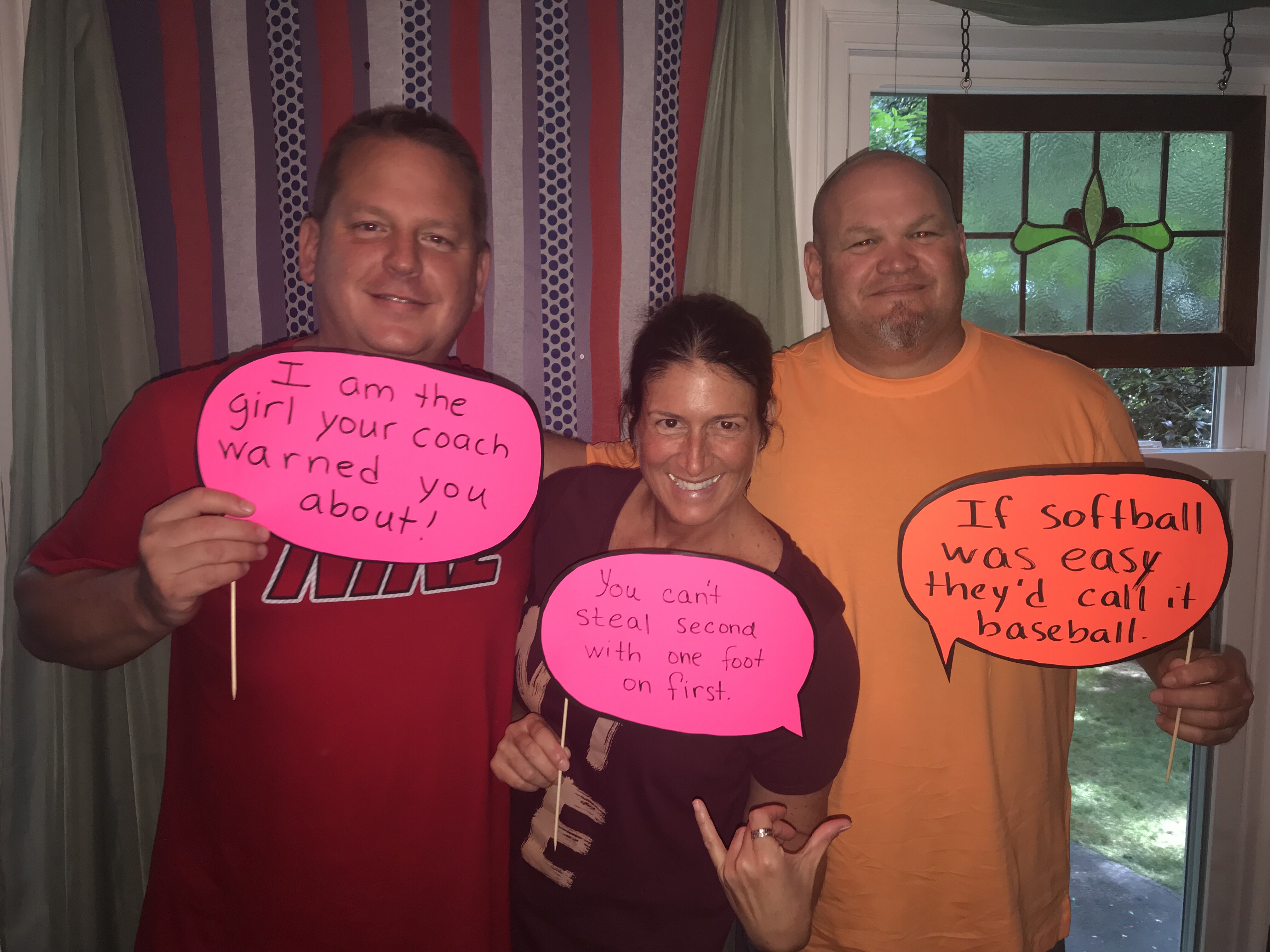 Paul and I have had dozens of girls come and go at these softball parties. What I remember most from these parties isn’t the mess and crumbs and empty soda cans and mud on the floor and nearly 2000 broken water balloons on the driveway (new record this year!) or the extensive prep-time or clean-up. I remember McKenna marching down our street shouting softball chants at the top of her lungs and all the other players chanting along. “I’M FIRED UP! YOU FIRED UP? YA! I CAN’T HEAR YOU!” I remember Sophia and her little sister Alex getting tangled-up playing Twister. I remember Coach Ashley getting ambushed by Emily’s team, and then covering Ashley’s face with face paint. I remember when neighborhood boys showed up and challenged the softballers with super soakers, and I remember the boys ran away. I remember Grace thinking she could spray Coach Mark with the water hose without any consequences, and I remember Grace realizing she underestimated Mark’s vengeful streak. I remember the tire swing breaking 5 minutes after the party started last year, and the hammock breaking 5 minutes later. I remember Kylee spending most of the day with us Saturday helping us get ready. I remember limbo and hoola hoops and bubble wands and a photo booth and loud music (some neighbors might say too loud) and spinning girls in the tree swing and colored hairspray and a dance party in the hall bathroom. I remember Lauren dropping her shoulder and making a bad swing in the batting net in the yard, and Coach Stephanie telling her “fix it!” I remember parents sitting on the deck watching all of this unfold around us. My memory is long but the memories blend together and it’s hard to tell one party from the next, and maybe it was all just one big giant, never ending softball party. And I remember every single year right before the party starts, I start thinking nobody is gonna have fun and I don’t know why we are doing this party.