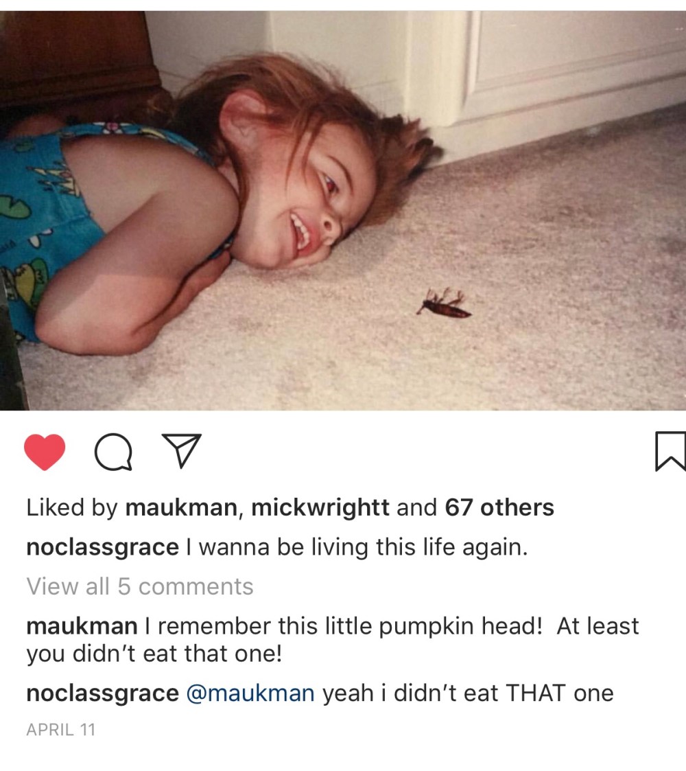 When My Gorgeous was maybe 2 years old, I found her staring at a parade of ants marching across the kitchen floor. She couldn’t take her eyes off of them. At 3 years old at the beach, I watched her grab a fly from the air in mid flight. Pretty neat, but I thought there was no way she could do it again. But she did. When she was 5, I told her the exterminator was coming to our house, and she asked what an exterminator was. I told her that he was the guy who would kill our bugs. She was mortified and asked why would anyone want to kill bugs. At 14, she reached down into the ivy and pulled out a black snake. It coiled around her arm as she walked out to the cul-de-sac, and the neighborhood boys stopped their basketball game to stare at this fearless chic.
