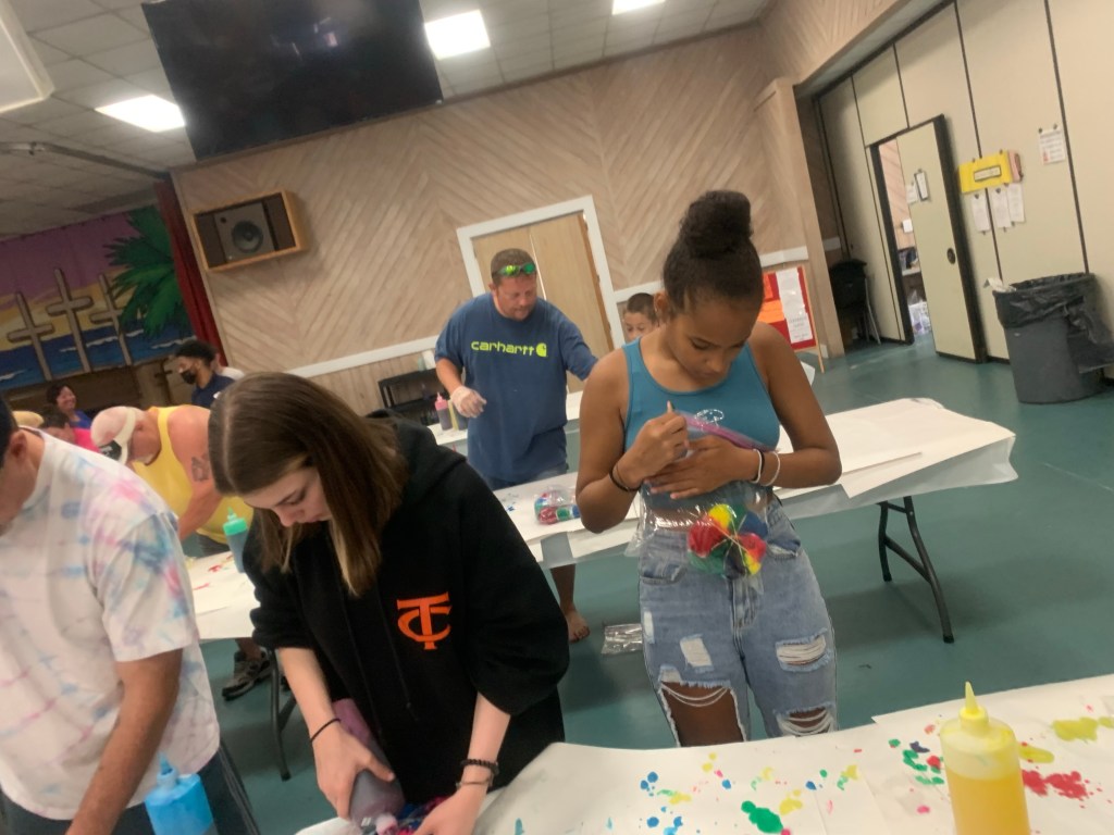 I have to give props to Paul for once again being the host with the most. He always makes sure everyone is having a great time. Unfortunately he does have a flaw. He thinks of Anne Murray and not The Monkees when Daydream Believer comes on the hot jam at the pool. But redemption comes for Paul with his culinary skills. He woke up early to make blueberry muffins and cinnamon rolls for Lauren’s birthday and decorated them with little paper umbrellas. And he has already wowed us with his World Famous Sandwich which he makes for us each year at the beach. He knows just the right ratio of mayo to tomato to lettuce to ham to mustard to bread to salt and pepper. Unfortunately, Lauren has gotten cocky since co-winning Burger Master, and her response to the World Famous was “eeww…tomatoes!” Alesia doesn’t care for the WF, but she fully appreciated Paul making her the perfect PB&J just for her. Meanwhile I’m here at the Lazy River. I finished my book yesterday, and I’m thinking about starting another but can’t quite find the motivation. Napping seems like a better way to spend my time. The cool kids are doing tie dye shirts in a little while. I’m finally cool this year. I haven’t done this activity in the past, but decided to sign up this year. Lauren and Alesia have backed out this year. I’ll probably do the ropes course with the girls before we leave. Paul is talking about doing a helicopter ride with some of the girls. We’ve still got to do mini golf, and we haven’t gone for donuts yet. I’m the one who does most of the packing for the trip. I’m the reason we had TP on day one, but what the fam will remember is that I didn’t order chocolate chips from Instacart so we have not had choc chip pancakes yet. Mom fail. They also make fun of me for my Amazon purchases of a waterproof phone case with lanyard, and my drawstring bag with a combo lock that I can secure to the beach chair so all our electronics don’t get stolen when we are in the water.