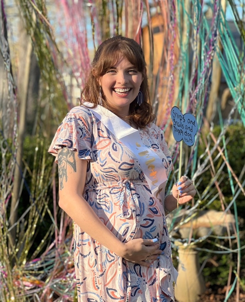 I told Lauren the other day that there’s always a moment before a party starts when I think to myself that the party will be a flop, no one will enjoy themselves, and I should have done this or that instead of those or these. There wasn’t time for that yesterday because we were prepping and decorating and making the balloon arch and setting out food (So. Much. Food) right up until party time. There’s still a bunch of decorations we didn’t use, and I forgot to put the cotton candy out on the ice cream table. I would have loved it if we’d been able to get the back deck painted but it’s been too windy lately. And I’m a little annoyed our pine needles still haven’t been delivered yet. But I watched people love My Gorgeous and Mr. Right and McBaby Butterbean, and play corn hole and lawn checkers, and snap pics at the photo booth, and do Tictox, and roast marshmallows at the fire pit, and sit in the yard chatting, and wander through the house eating, and listen to Ice Ice Baby and Baby I Love Your Way and Parents Just Don’t Understand and Butterfly Kisses and Sweet Child O’Mine and a bunch of other cute songs. And yes I saw you Mr. Mauk checking the Master’s golf score on the tv and your phone. And I think the party was perfect. We are excited to meet this precious baby boy. Lolli and Papa, Auntie Em and Aunt L-Dawg love you so much!