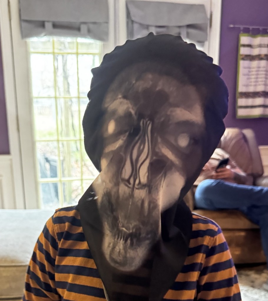 And for a little levity, here’s a pic of Harry wearing a mask of my jump scare MRI. Grace custom ordered it. This is how I remember that because of God, I can boldly laugh at what the enemy thought would frighten me.